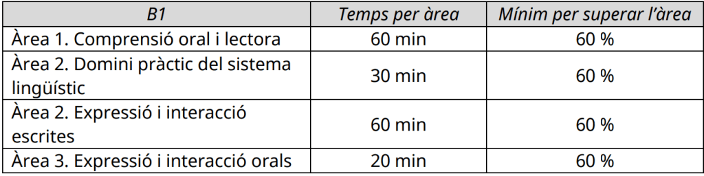 Para certificar el nivel B1 de catalán, tienes que superar una prueba que se divide en cuatro partes: comprensión oral y lectora, dominio práctico de la lengua, expresión e interacción escrita, y expresión e interacción oral. Para aprobar, debes obtener al menos un 60% en cada parte.